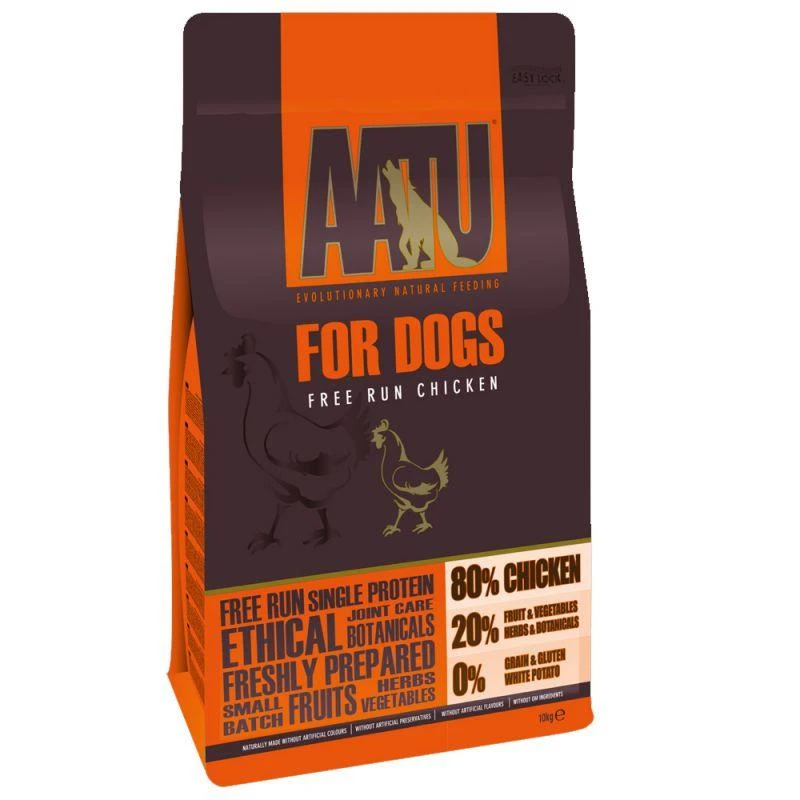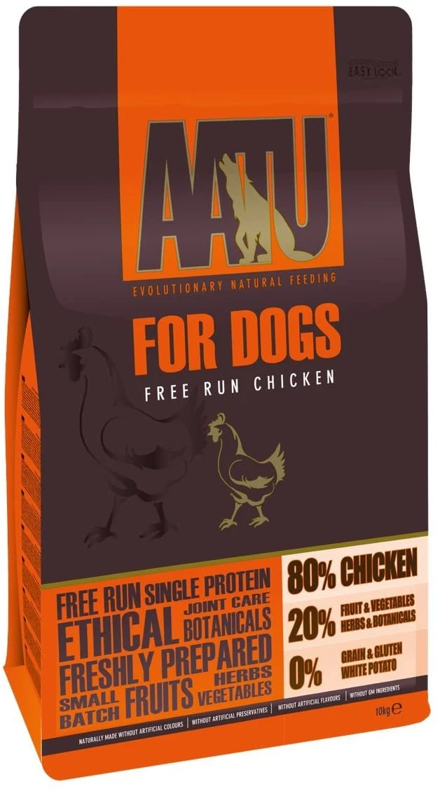 AATU Free Run Chicken fog food is made by hand from raw, fresh ingredients and slow-cooked in small batches. Only natural ingredients are used, so you won’t find any artificial additives or GM ingredients in the recipe.