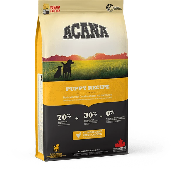 When it comes to ACANA food for dogs, every ingredient matters. That’s why our Puppy Recipe is thoughtfully crafted to nurture growing puppies of all breeds. Rich with 70%* quality animal ingredients like fresh Canadian chicken and raw flounder balanced with 30% fruit, vegetables & botanicals, this recipe provides your puppy with the protein and nutrition they need to support their rapid development. With quality animal ingredients balanced with fruit, vegetables and botanicals delivered daily, every meal of ACANA Puppy Recipe is like it came from the farmer’s market.