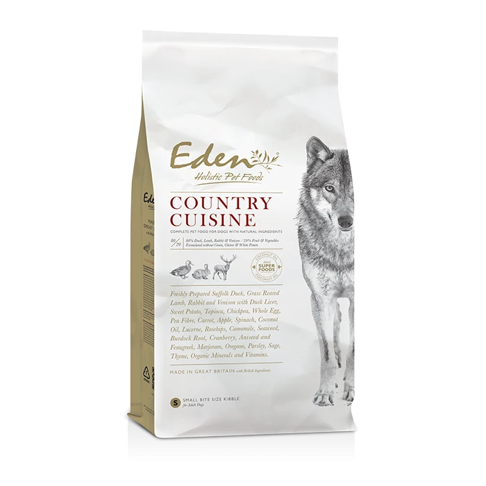 Freshly Prepared Duck 30%, Dried Duck 13%, Sweet Potato 13%, Freshly Prepared Lamb 10%, Dried Rabbit 8%, Freshly Prepared Venison 7%, Duck Fat 5%, Tapioca 3.5%, Chickpea 3.5%, Dried Lamb 3%, Whole Egg 2%, Duck Liver 2%, Pea Fibre 0.5%, Minerals & Vitamins, Carrot, Apple, Spinach, Coconut Oil 0.06%, Lucerne, Rosehips, Burdock Root, Camomile, Seaweed, Cranberry, Aniseed & fenugreek, Fructooligosaccharides 450mg/kg, Glucosamine 340mg/kg, Methylsulfonylmethane 340mg/kg, Chondroitin Sulphate 240mg/kg, Thyme, Marjoram, Oregano, Parsley, Sage.