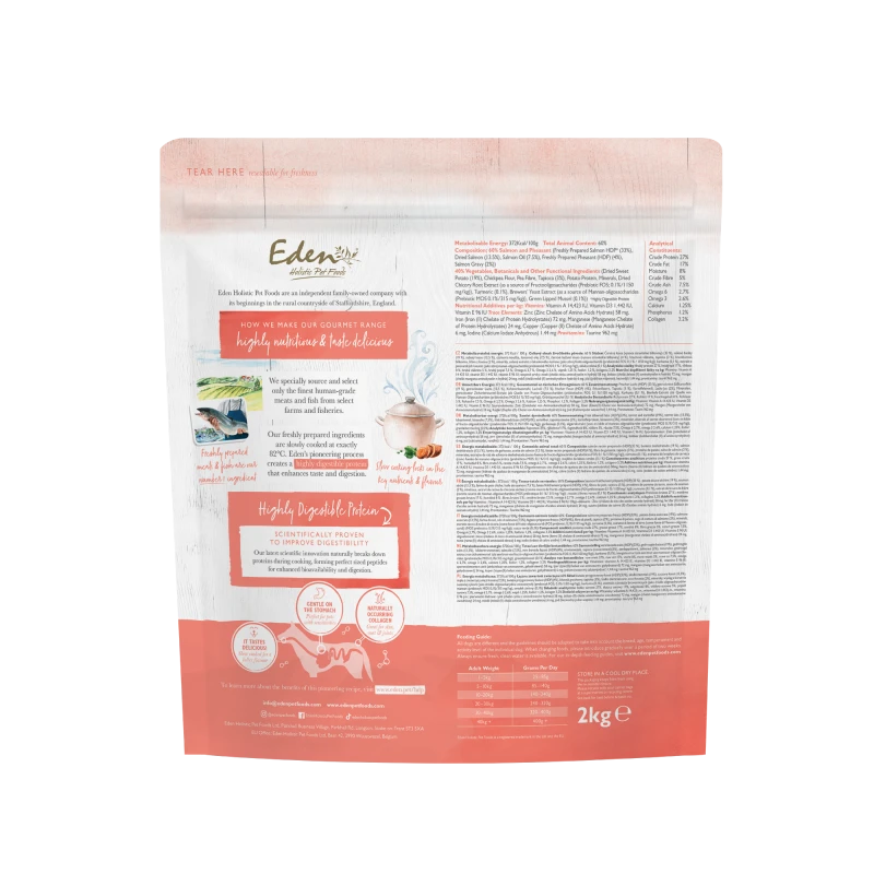 Boasting a 37% Freshly Prepared Salmon and Freshly Prepared Pheasant, cooked gently with a natural enzyme, for gentle digestion and optimum absorption of nutrients. Creating perfect-sized peptides, that are easily absorbed, then transported to where they are needed most for the body to thrive.