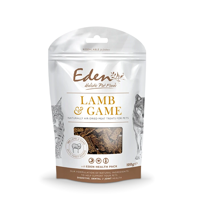 Eden Lamb & Game treats are suitable for both cats and dogs, boasting a 70% meat content including, the use of novel game proteins, buffalo, bison and wild boar. Not only do these meats allow for a luxurious and exotic taste but also provide excellent nutritional value, and are a great choice for pets with sensitive stomachs.