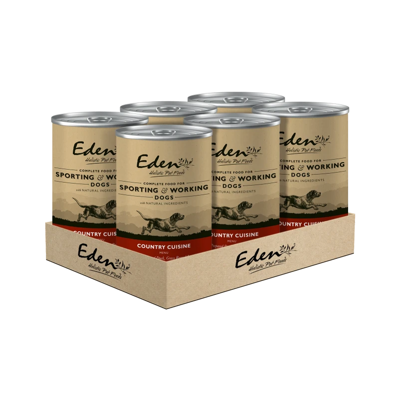 Country Cuisine Sporting & Working dog wet food provides a balanced complete food for your working and sporting dog, which is high in quality protein and is naturally hypoallergenic, grain, gluten and white potato-free.