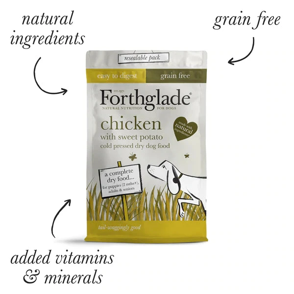 Chicken 32.5% (17.5% freshly prepared chicken, 15% dried ground chicken)†, Dried Sweet Potato (28%)†, Dried Peas*†, Chicken Fat*†, Gelatin*, Dried Beet Pulp*†, Dried Fruit (2.3%: apples, pears, blueberries, cranberries), Salmon Oil (1%)†, Brewer’s Yeast*, Dried Botanicals (0.6%: Fennel, Nettle, Dandelion), Mannan-oligosaccharide, Egg Powder*†, Chicory Extract*†, Dried Seaweed*, Camomile*, Flaxseed Oil*†, Glucosamine (300mg/kg), Chondroitin Sulphate (300mg/kg). Yucca*.