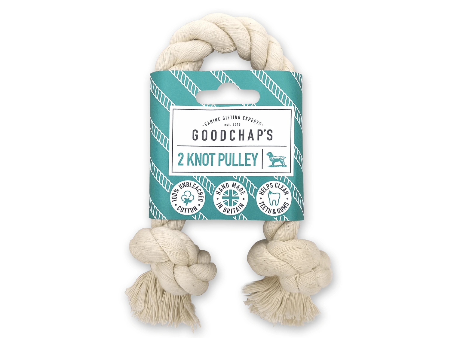 This 2 Knot Rope Pulley toy is an eco-friendly toy choice for your dog, as it’s handmade in Britain from 100% unbleached three strand cotton (fully recyclable, biodegradable or compostable) and is packaged in card which is also recyclable.