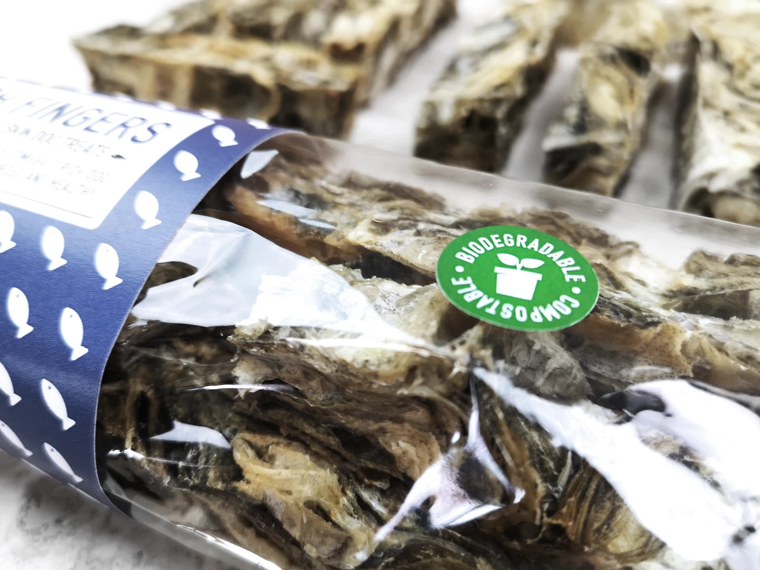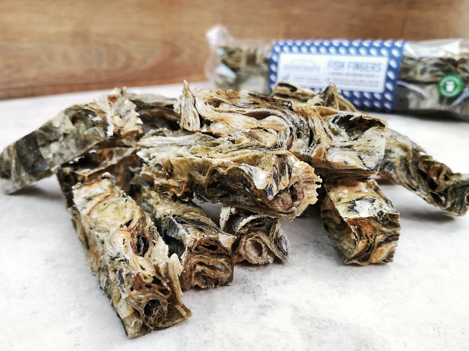 These omega 3 rich dog treats are sustainably sourced and pressed into bars for your dog to crunch and enjoy. These treats are the perfect size for pooches to hold between their paws for easy gnawing
