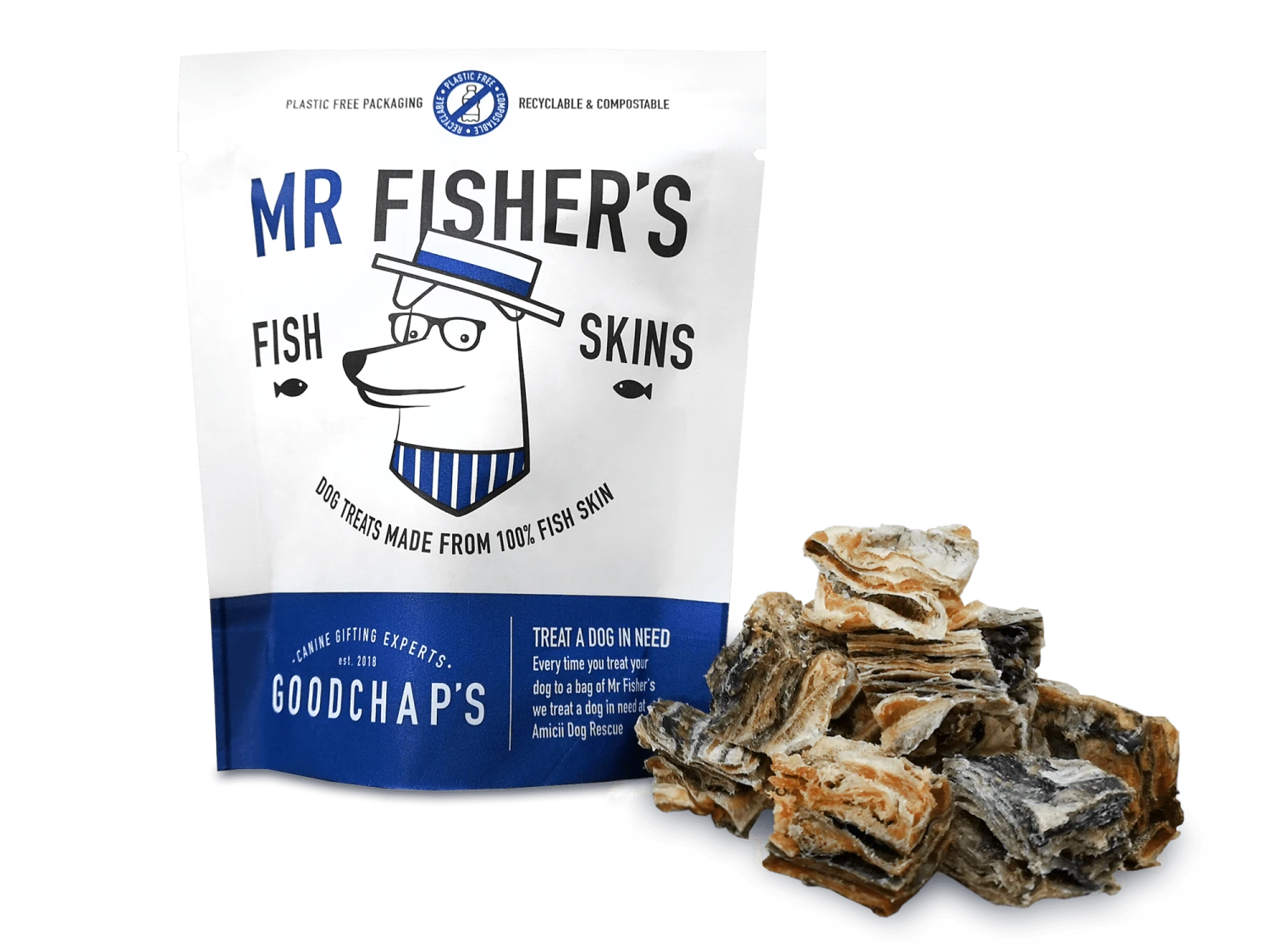 Even better, every time you buy a pack of these tasty Fish Skins, a rescue centre dog receives some treats too!