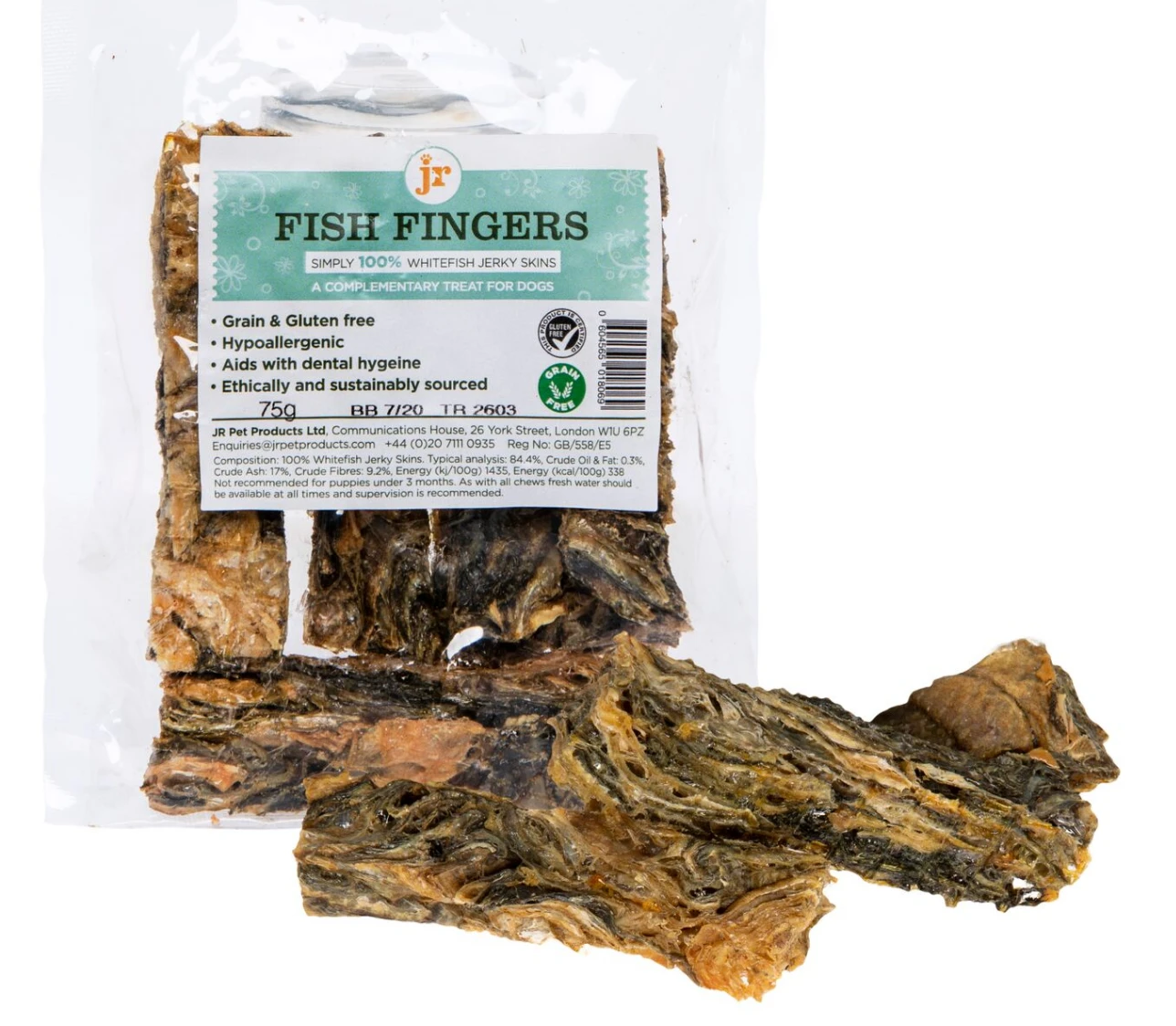 JR’s 100% natural Fish Fingers for Dogs are not only delicious and crunchy but they’re healthy too. Ideal for dogs of all breeds and sizes, they’re a great source of protein and are perfect for training or as a guilt-free snack.