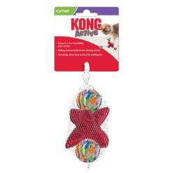 KONG Cat Active Jacks toss 3 toys into play with kitty-tempting spins on traditional fun in super lightweight toys that spark action. Fast-rolling, bouncy balls and easy-to-flip jack invite pouncing and batting play. KONG North American Premium Catnip and crackle in shiny Jack prolong engagement for tons of healthy exercise.