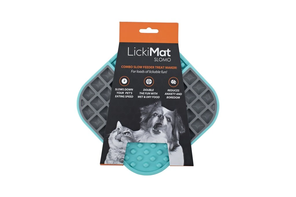 - Dishwasher safeSpread soft food or small chunk treats over the grid and bobble design of the LickiMat Slomo. Now sit back as your pet spends ages using their tongue to extract every last bit of food from it! Why not give it a go with our Peamutt Butter.This doesn’t just provide entertainment for your pet—it’s also good for their physical and mental health. Repeated licking stimulates the release of endorphins that can calm your pet down, helping them cope with stressful situations. It also stimulates increased saliva production along with digestive enzymes, promoting better dental and digestive health. The gridded texture of this product helps to scrape bacteria from your pet’s tongue which help’s to keep their breath fresher.The LickiMat can be popped into the freezer to make ice-cold treats for your pet on those hot summer days and if you want great ideas for LickiMat recipes, you can find them here:
