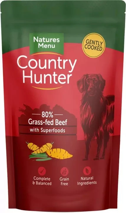 Our Country Hunter pouches for dogs are filled with top quality ingredients, sealed and then gently cooked to lock in goodness. A great alternative to raw feeding when travelling or staying away. Suitable for adult dogs and puppies over 20 weeks.