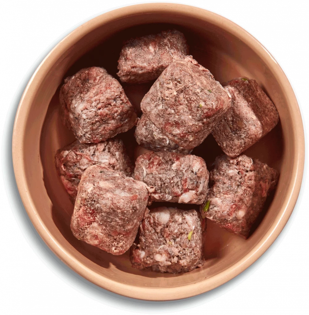 Treat your dog to a complete, quality, raw beef meal. Dog food needn’t be inferior. At Natures Menu, we only use human grade, responsibly sourced meat. Our grass-fed beef raw dog food nuggets contain 80% beef and a nutritious blend of fruit and vegetable superfood, so you can feed your dog a meal to bark about!