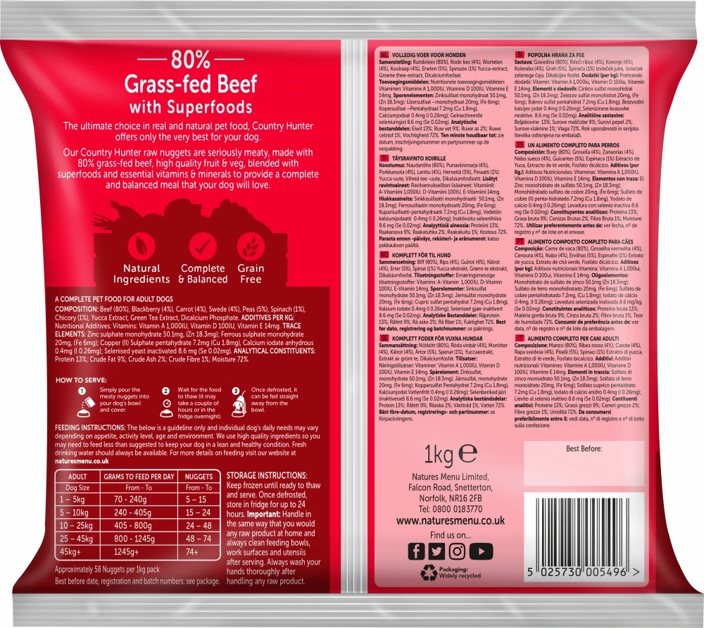 Country Hunter Grass Fed Beef Nuggets are an easy way to switch your dog to raw, as you simply count out the number of nuggets needed, thaw and serve. They’re naturally gentle on your dog’s digestion, and perfect for dogs with allergies or sensitive stomachs.