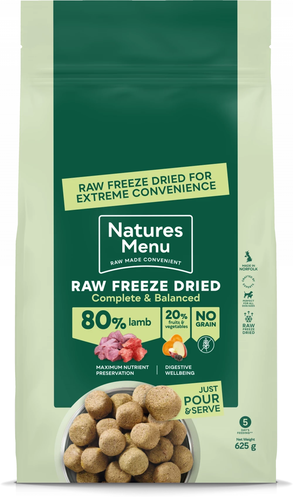 Irresistible lamb dog food. Freeze Dried complete and balanced food, for convenience and quality. Made using 80% lamb, combined with fruits, vegetables and superfoods.