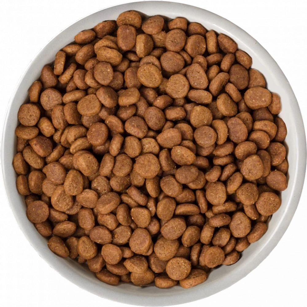 Deboned turkey* (20%), dried chicken protein (19%), dried peas* (10%), dried potatoes* (10%), dried pork protein (6%), dried chickpeas (6%), dried turkey protein (5%), pea fibre, poultry fat* (3%), protein hydrolysate (3%), beet pulp*, potato starch*, dried chicory root*, minerals, dried carrot* (0.5% equivalent to 4% fresh carrot), dried apple* (0.3% equivalent to 2% fresh apple).