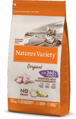 Complete and balanced pet food for adult cats, no grain. Made with deboned turkey meat as the main ingredient. Paired with carefully selected fruits and vegetables.