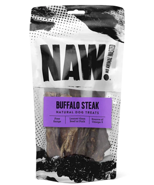 Grass-fed Buffalo Steak. Premium free range water buffalo steak, air dried to produce the perfect high quality dog treat.