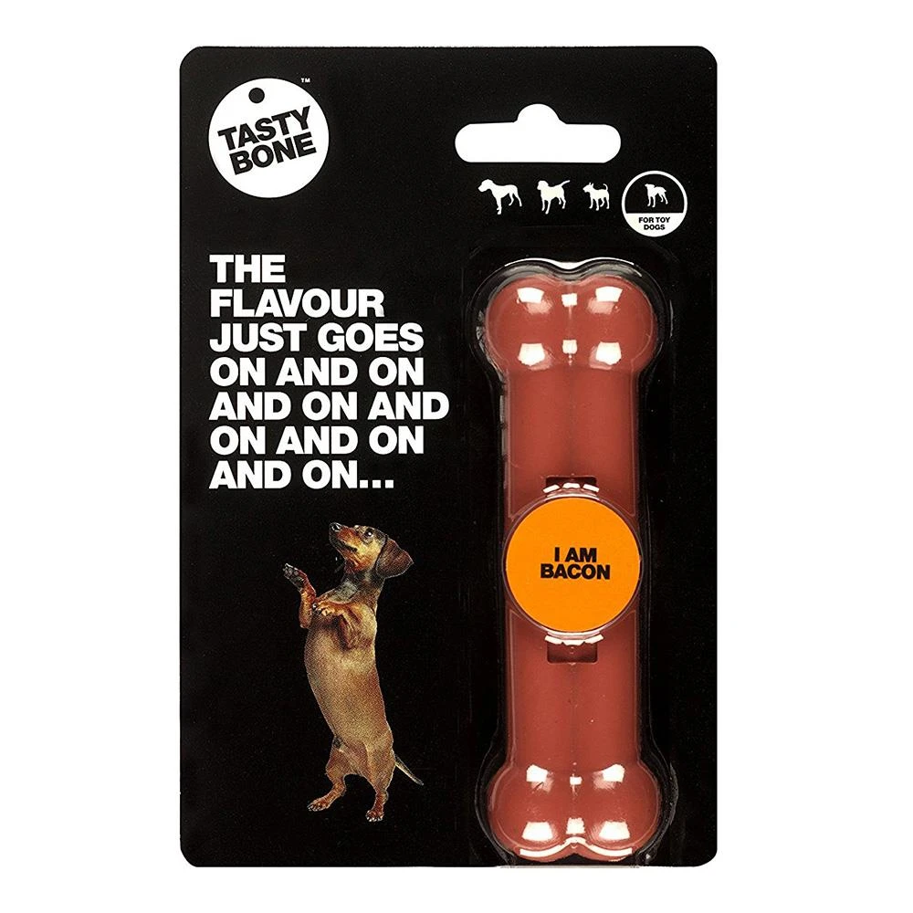 This bacon flavour Tasty Bone is infused throughout with a delicious bacon flavour that will make it irresistible to your dog, and it’s so tough that it will keep even more aggressive chewers busy for hours! It’s a durable dog toy made from tough nylon that will clean your dog’s teeth and gums naturally as they chew, promoting good dental health and helping to prevent tartar build-up
