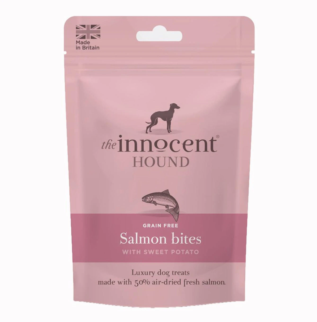 These air-dried mini salmon sausages are made with 50% fresh salmon and a handful of chopped sweet potato. Made in The Innocent Hound’s human grade factory in Yorkshire. A real treat for your innocent hound.