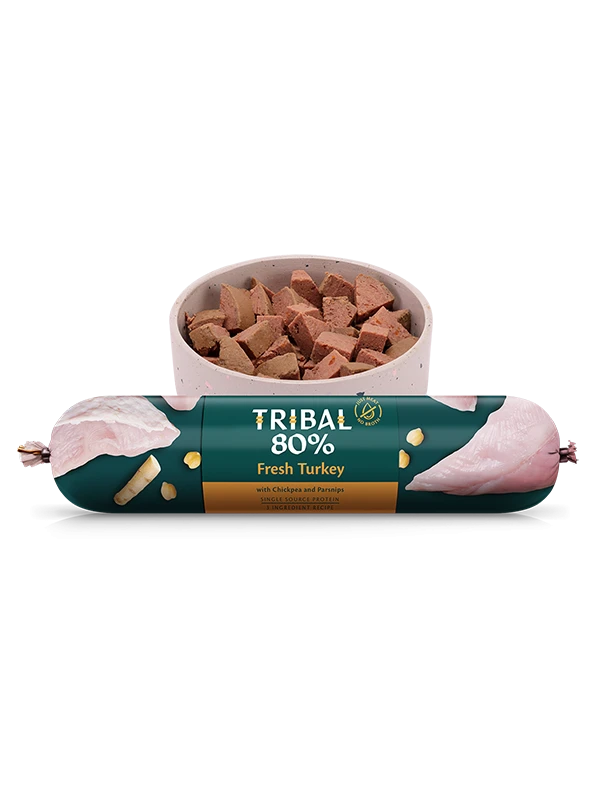 This top quality Tribal 80% Turkey Gourmet Sausage – Turkey isn’t just a mouth-wateringly tasty meal for your dog, it’s been carefully developed to be in tune with their natural feeding and digestion processes. It’s both tempting and naturally healthy, all at the same time! Tribal products are made in the UK and the Netherlands using responsibly raised meats and sustainably sourced fish.
