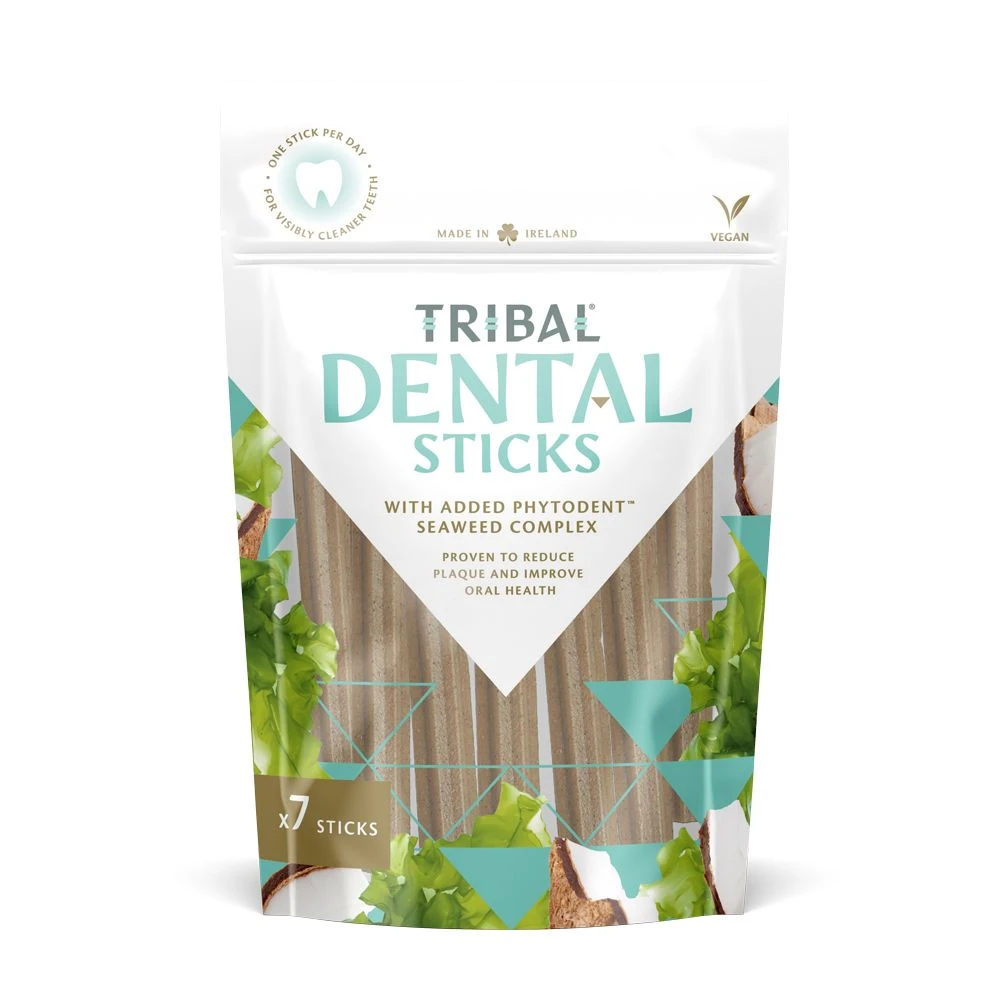Made in Ireland with 100% recyclable packaging, in two sizes that are sure to please every pooch. Tribal Dental sticks are the tasty way to support teeth and gums.