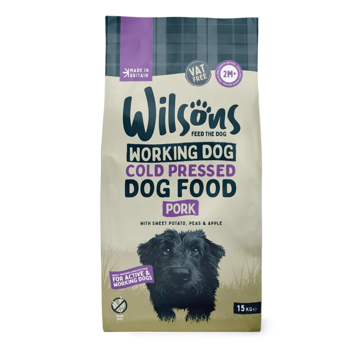 Made in the UK, Wilsons Pork Cold Pressed Working Dog Food combines high protein pork with nutrient-rich, fibre-rich peas, sweet potato and apple for a really tasty, high energy dog food. It’s idea for busy working dogs and formulated to contain all the nutrients they need, with added vitamins and minerals to support their immune system, keep their coat shiny and boost their overall health.