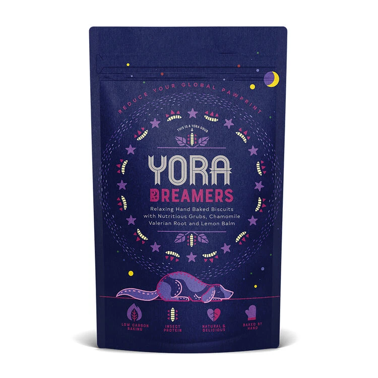 Yora is packed with all the healthy protein and nutrients an active dog needs to keep them satisfied all day. Their insects are rich in healthy fats that give pets noticeably glossier fur, and healthier skin which shines through in every way. Yora mix their insects with familiar favourites like potatoes, oats and beetroot for all day energy, plus other superfoods like seaweed, glucosamine and chondroitin for joint care. Traditional farming uses an incredible amount of water, land and energy, including the resources needed to grow all of the crops to feed the animals. Yora grubs are reared in a solar powered farm, and fed left over fruit pulp and potato peelings from fruit juice and french fry manufacture. No fertiliser, no pesticides, no water pollution, no deforestation, no antibiotics.